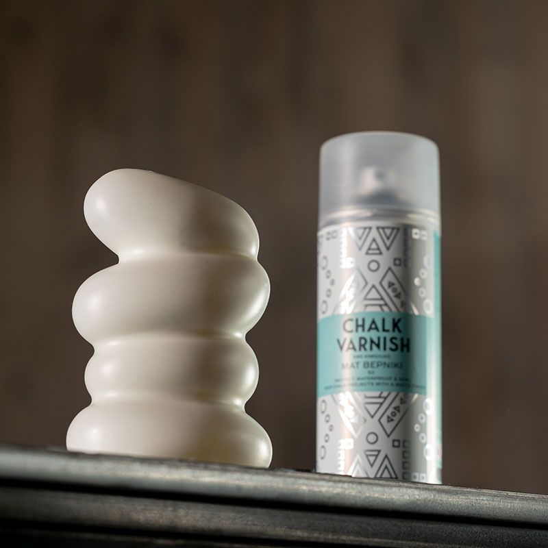 Cosmos Lac CHALK VARNISH 400мл - прозорий ультраматовий лак-спрей на основі 100% акрилової смоли для фінішного захисту поверхонь. Професійна формула з системою Smart Cap забезпечує рівномірне покриття без підтікань, швидке висихання та високу атмосферостійкість на різних поверхнях: дереві, металі, склі, кераміці. Ідеальний для реставрації меблів та DIY-проєктів.