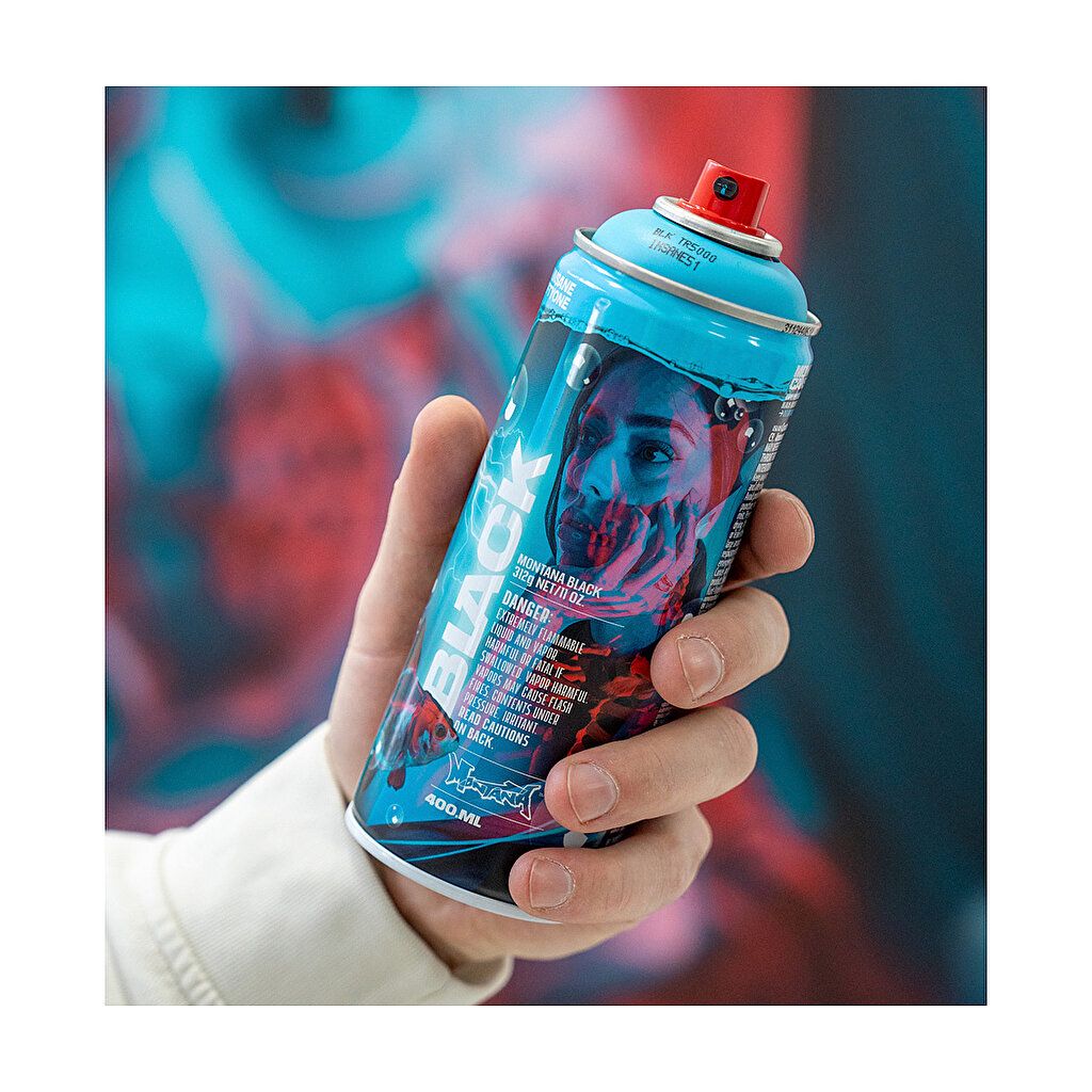 Афінський митець INSANE 51 став обличчям 28-го випуску серії Montana BLACK Artist Edition! Для своєї колаборації з виробником він обрав колір TR5000 True Cyan із серії Montana BLACK 400мл, який вирізняється надзвичайною покривною здатністю та потужним тиском.