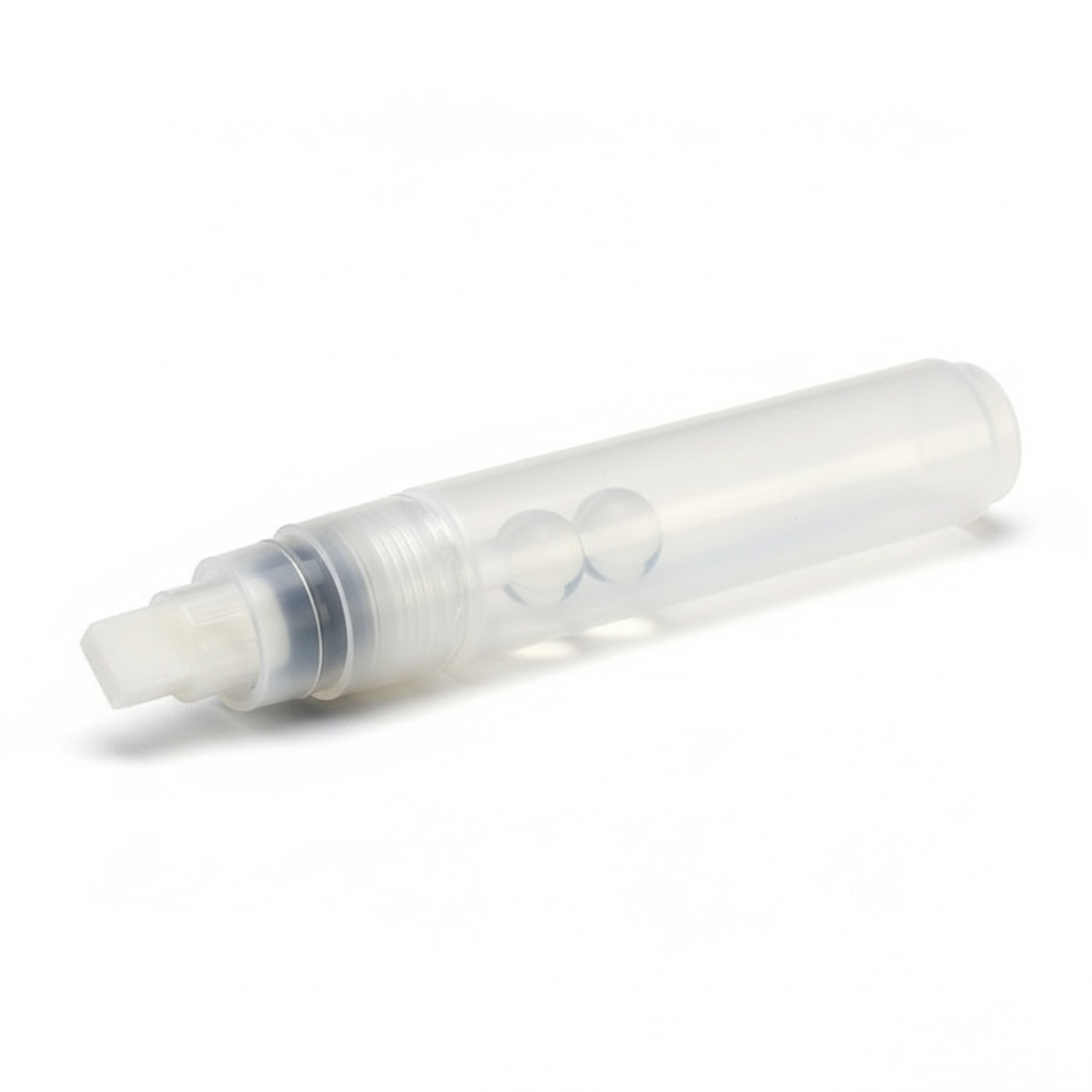 Корпус маркера повністю розбірний, що спрощує заправку та обслуговування. Для роботи підходять спиртові чорнила будь-якої в’язкості та перманентні рідкі фарби - достатньо відкрутити пишучий вузол, зняти помпу та заповнити резервуар. Оптимально маркер працює з рідкими спиртовими складами, які максимально насичують перо та забезпечують плавний випуск без пропусків.